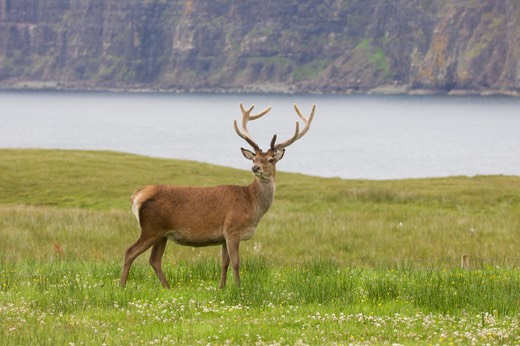 Deer: just showing up in the garden of Pooltiel House! He looks kind of cool against the backdrop of the loch and Dunvegan Head.