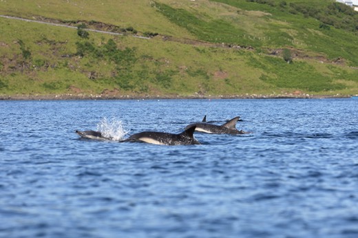 Dolphins: during the 2017 summer holiday we were out with the kayaks in Loch Pooltiel when this pot entered the loch and passed ahead of us. Amazing experience.
